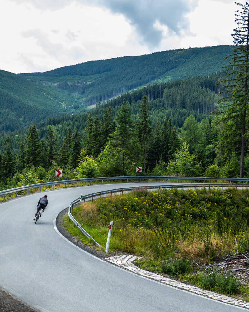 Karkonosze Cycling Camp – Szosa to propozycja dla osób, które cenią prawdziwą jazdę w górach, ciszę asfaltu i dobrze zaplanowane trasy. Każdego dnia odkrywamy inne oblicze regionu – od długich podjazdów, przez płynne, widokowe odcinki, po techniczne zjazdy.